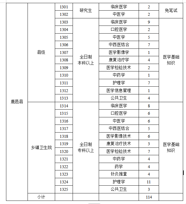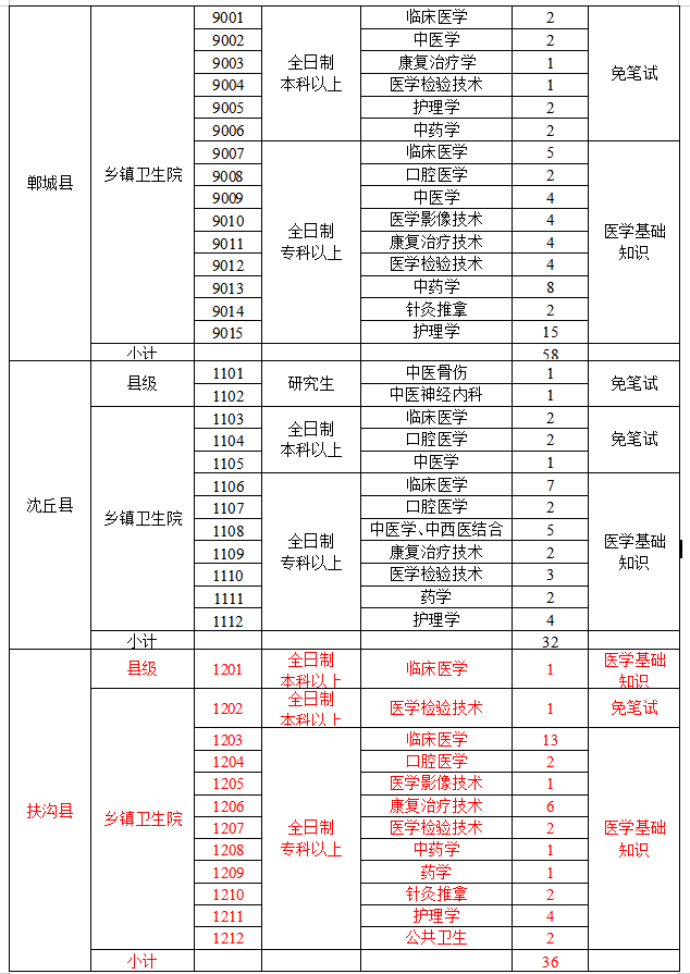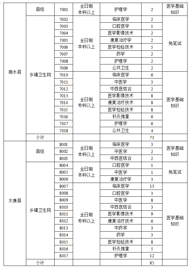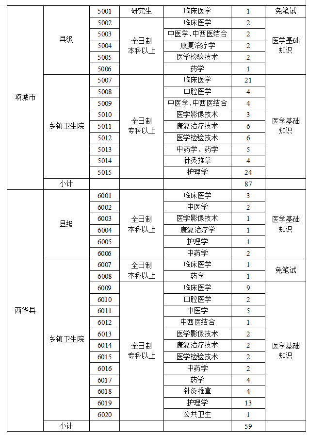 5、报考县级医疗机构的需普通全日制本科及以上学历,报考乡镇卫生院的需普通全日制大专及以上学历;
